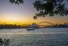 Golden sunset over the Opera House and Harbour Bridge — a stunning blend of nature and city beauty.