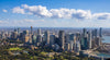 A stunning daytime shot of the Sydney skyline, featuring a dynamic blend of modern skyscrapers and lush parklands under a clear, bright sky.