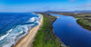 Looking south along the Bellinger River at Mylestom with North Beach on the east.