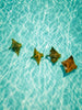 Dive into the crystal-clear waters of Baja California Sur, Mexico, with this captivating aerial drone photograph of four mobula rays gliding just beneath the surface.