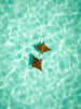 A top-down drone shot reveals two mobula rays gliding gracefully just beneath the water’s surface in La Ventana, Mexico.