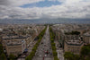 This striking cityscape print offers a panoramic view of Paris, captured from above the iconic Champs-Élysées. The long, tree-lined avenue stretches toward the horizon, framed by classic Parisian architecture on both sides.