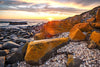 Golden sunrise breaking above sea-soaked boulders at Falmouth, Tasmania. This print is part of my Coastal Moments series - quiet moments where light, water and shoreline meet at the edges of the day.