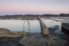 This tranquil moment at sunset captures Werri Beach Rockpool, featuring gentle colours in the sky and still water, giving a sense of relaxation.